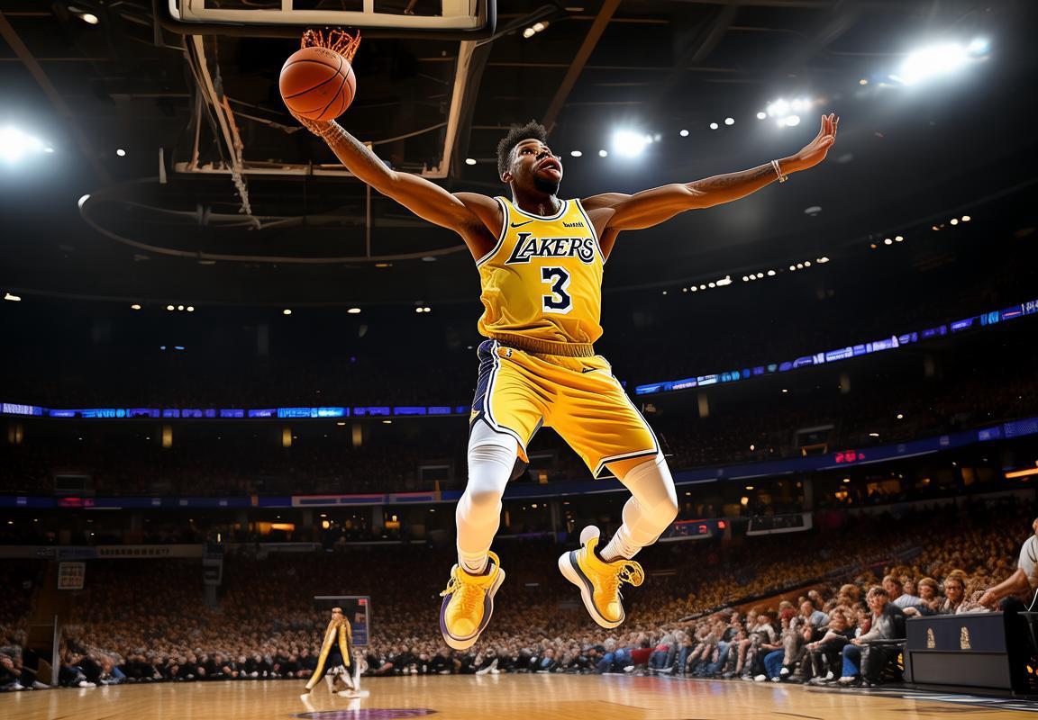 那一刻,球场上空仿佛凝固了。湖人队的贾维尔·霍姆格伦,如同一位舞者在空中划过一道完美的弧线。他高高跃起,身体舒展,双臂张开,仿佛在向整个世界展示着他的空中优势。